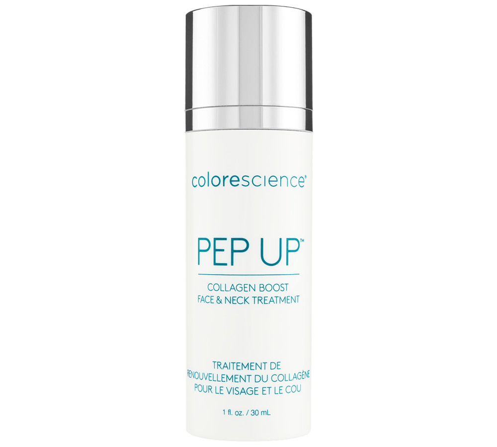Colorescience’s new, clinically-tested Pep Up Collagen boost Face & Neck Treatment was created to give your skin the tools it needs to strengthen itself. Ideal for all skin types, Pep Up combines a powerful blend of ingredients to help support your skin’s own healthy collagen production, so it can repair and defend against visible signs of aging. This treatment will enhance skin texture and tone, help diminish the appearance of wrinkles, and provide you with a healthy, rejuvenated look.
