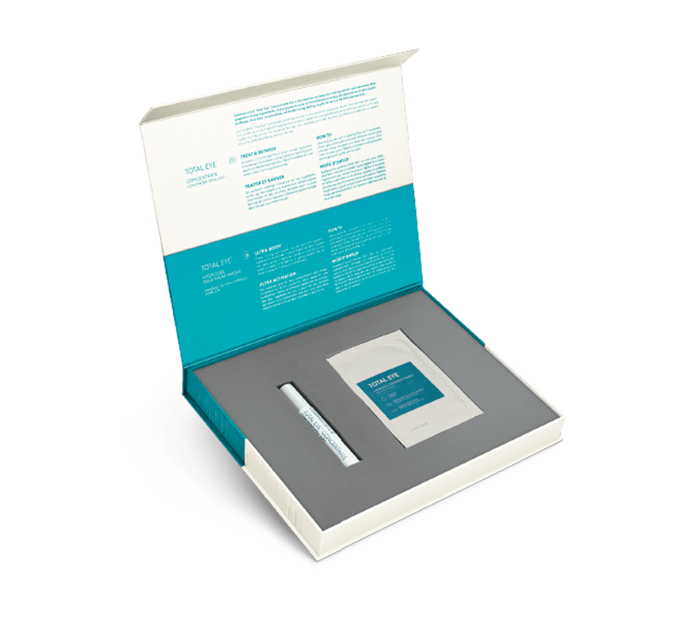 Give your eyes a boost with Total Eye™ Concentrate Kit, which perfectly accompanies your Colorescience® Total Eye™ 3-in-1 Renewal Care. The Total Eye™ Concentrate Kit includes Total Eye™ Concentrate as well as Total Eye™ Hydrogel Treatment Masks (12 pairs total). With powerful, clinical ingredients, the regimen works to minimize the appearance of dark circles, puffiness, fine lines, and wrinkles, while delivering long-term results to restore the eye area — the most delicate area on our face.